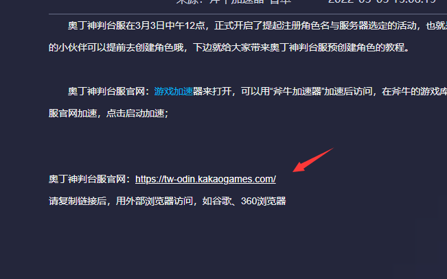 在斧牛游戏库中搜索“奥丁”,找到奥丁神叛台服或奥丁神叛台服官网加速,启动加速后,在加速详情页面点击下边的教程,在教程中可以找到奥丁神叛台服的官网地址,点击进入。