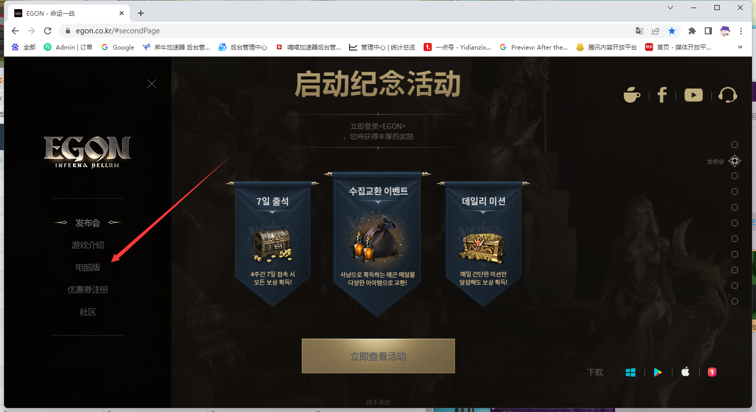 第一步:在斧牛加速器游戏库中搜索“EGON”,找到EGON韩服并启动加速,加速成功后,点击下边的游戏登陆下载教程,然后找到官网链接,打开EGON韩服的官网,https://www.egon.co.kr/#sevenPage