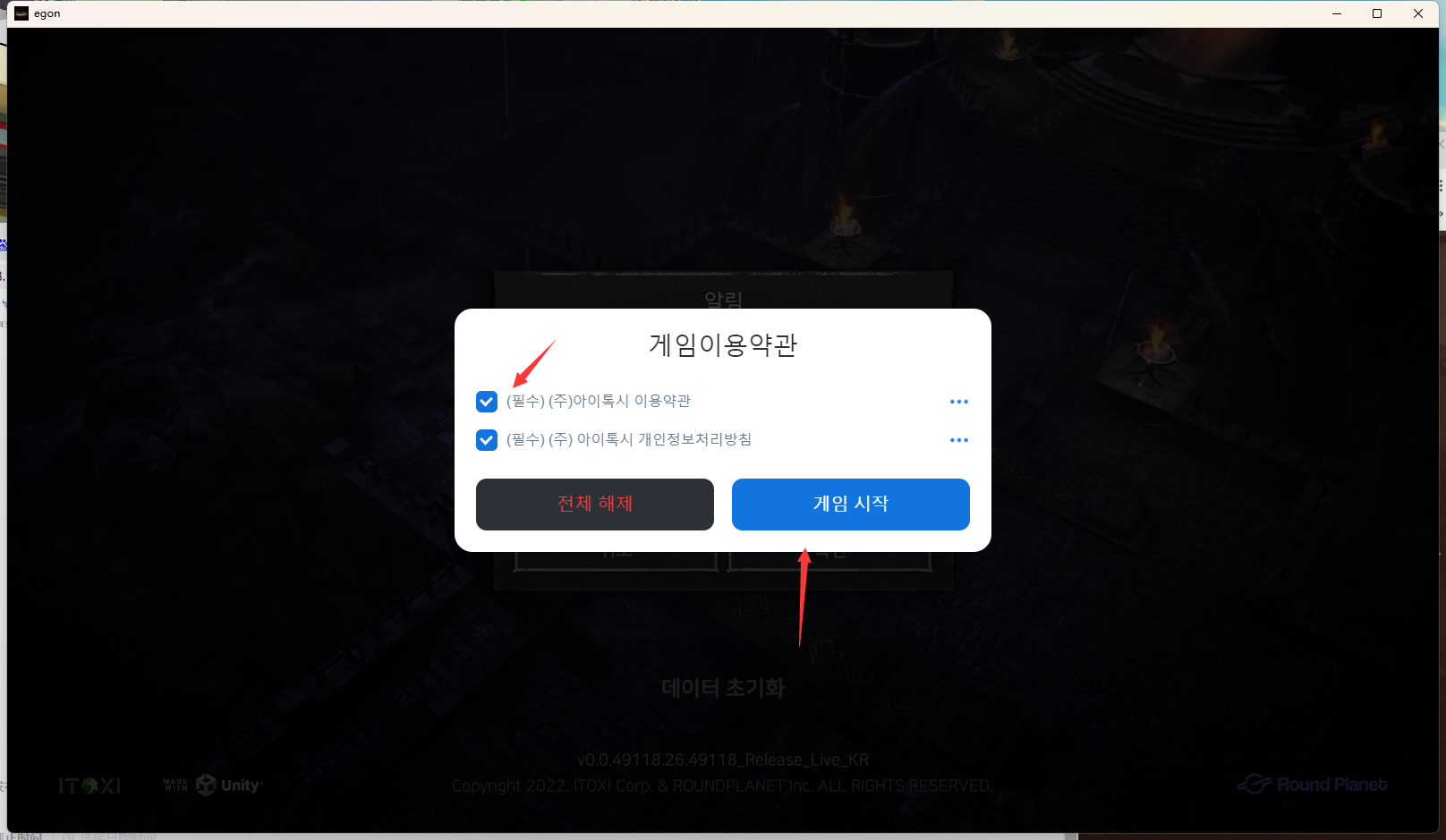 正常进入游戏后,会有一个用户协议,全部勾选点击右侧按钮进入下一步