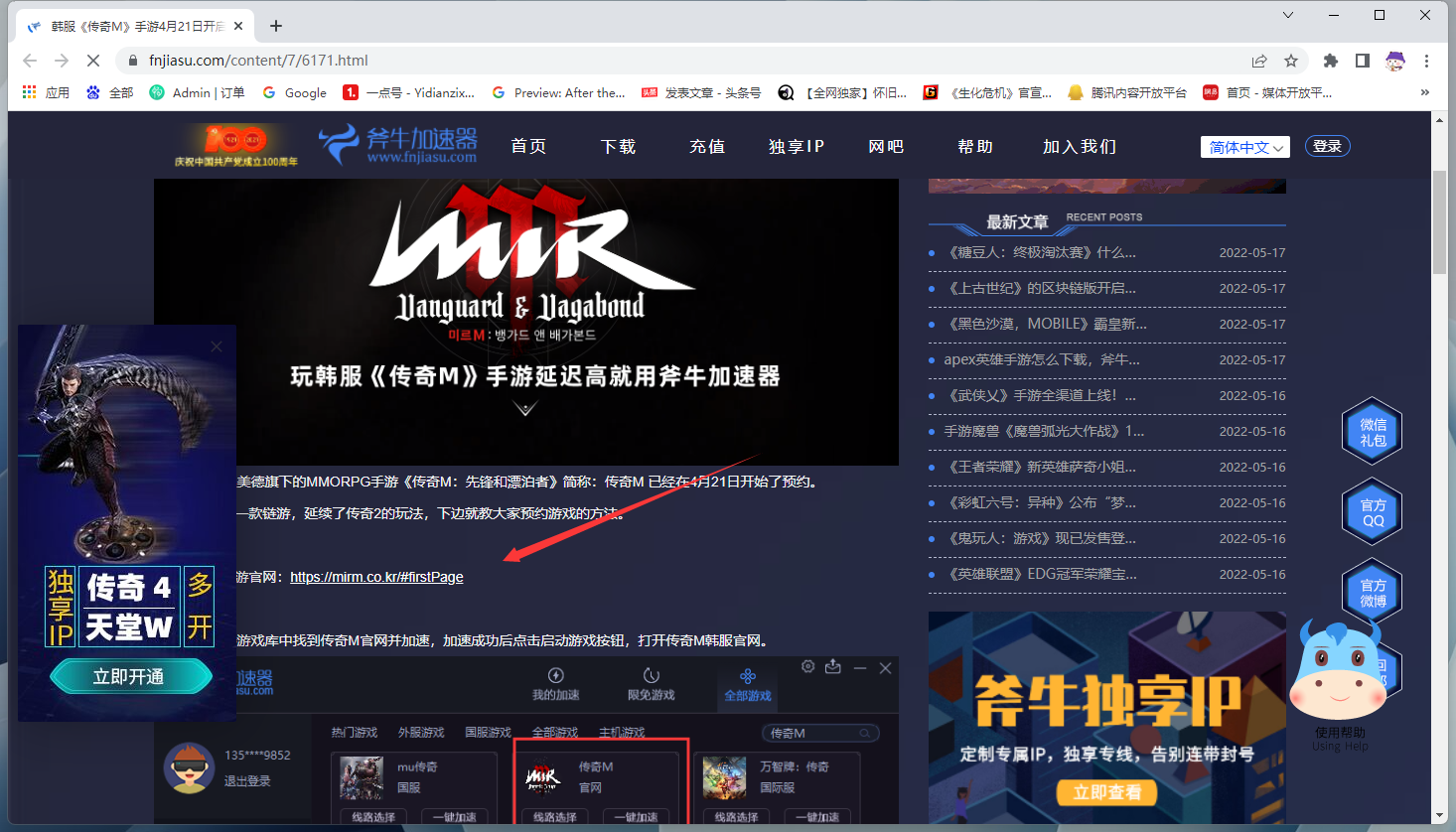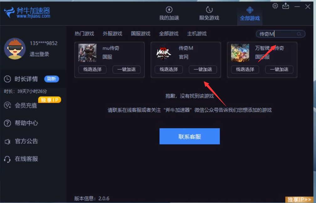 第一步:在斧牛加速器游戏库中搜索“传奇M”找到传奇M官网或游戏并启动加速,加速成功后,点击加速详情页下边的教程文昭,在文章中可以传奇M官网地址,点击进入。